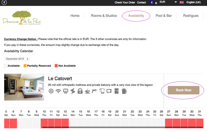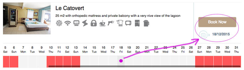 NB : Vous pouvez cliquer sur une date pour choisir votre date d'arrivée. Ensuite cliquez sur "Réserver". Cette étape n'est pas obligatoire. Vous pouvez cliquer sur "Réserver" directement.
