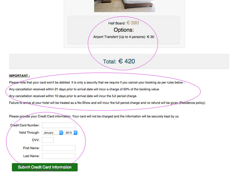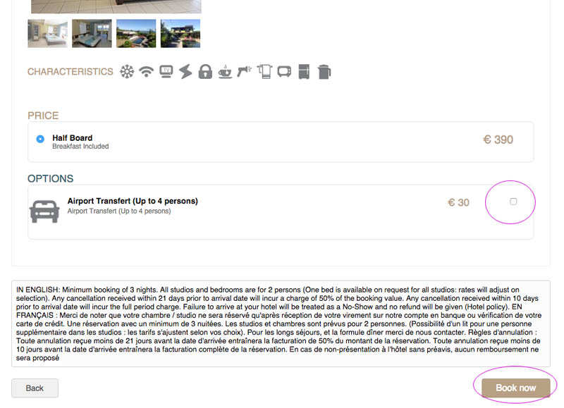 6/ Sur la prochaine page, vous devez choisir les options : Type de chambre et autres options disponibles.