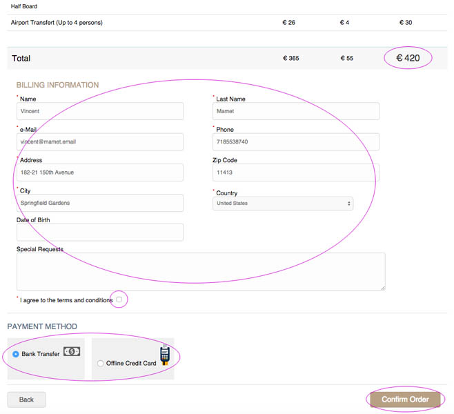 NB : Si vous avez choisi de payer par transfert bancaire, vous serez redirigé vers une page qui vous donnera toutes les informations bancaires afin que vous puissiez effectuer votre paiement. Merci de porter attention aux rêgles d'annulation.